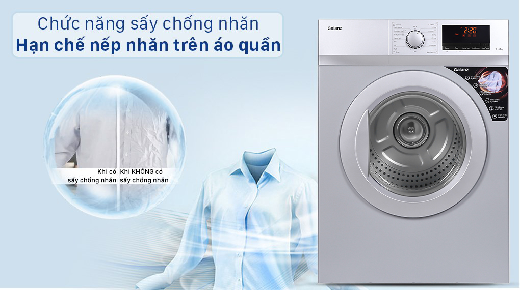 Chức năng sấy chống nhăn hạn chế nếp nhăn, bảo vệ áo quần