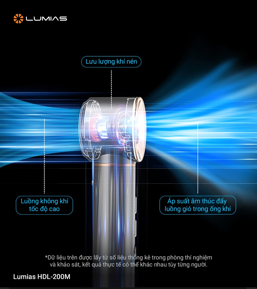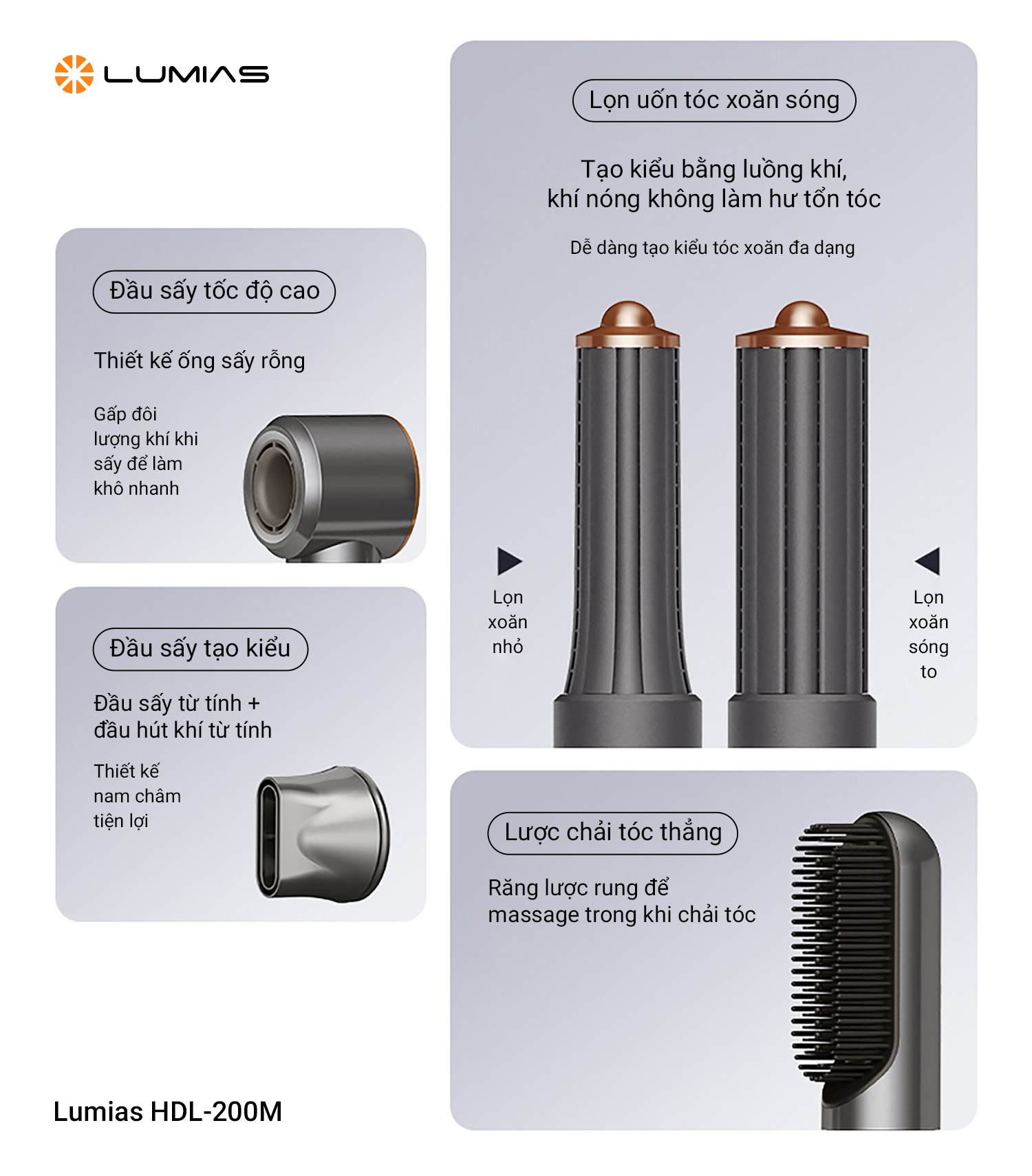 Máy sấy tóc đa năng Lumias HDL-200M công suất mạnh mẽ 1300W, động cơ không chổi than hoạt động 110.000 vòng/phút