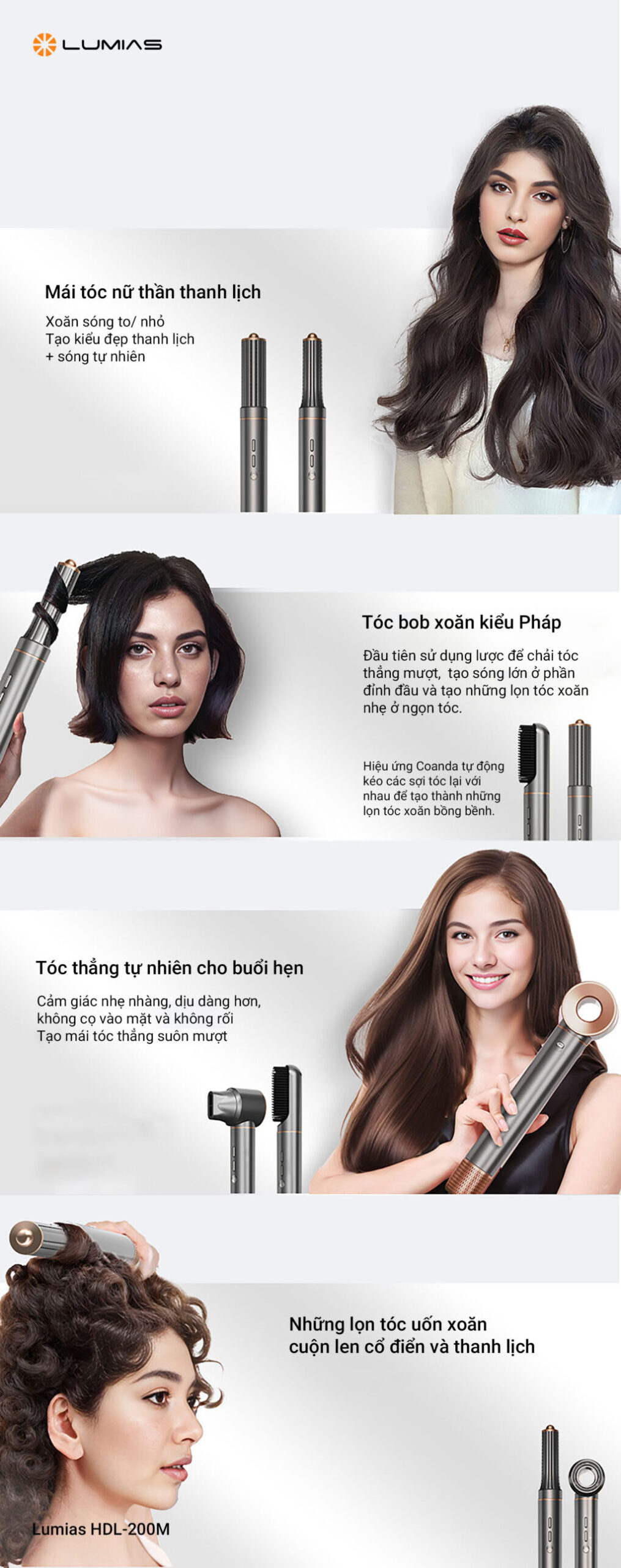 Là một công cụ tạo kiểu đa năng, máy sấy tóc ion âm Lumias HDL-200M mang đến trải nghiệm chăm sóc tóc chuyên nghiệp ngay tại nhà. Bộ sưu tập 5 đầu sấy đa dạng đáp ứng mọi nhu cầu tạo kiểu của bạn.
