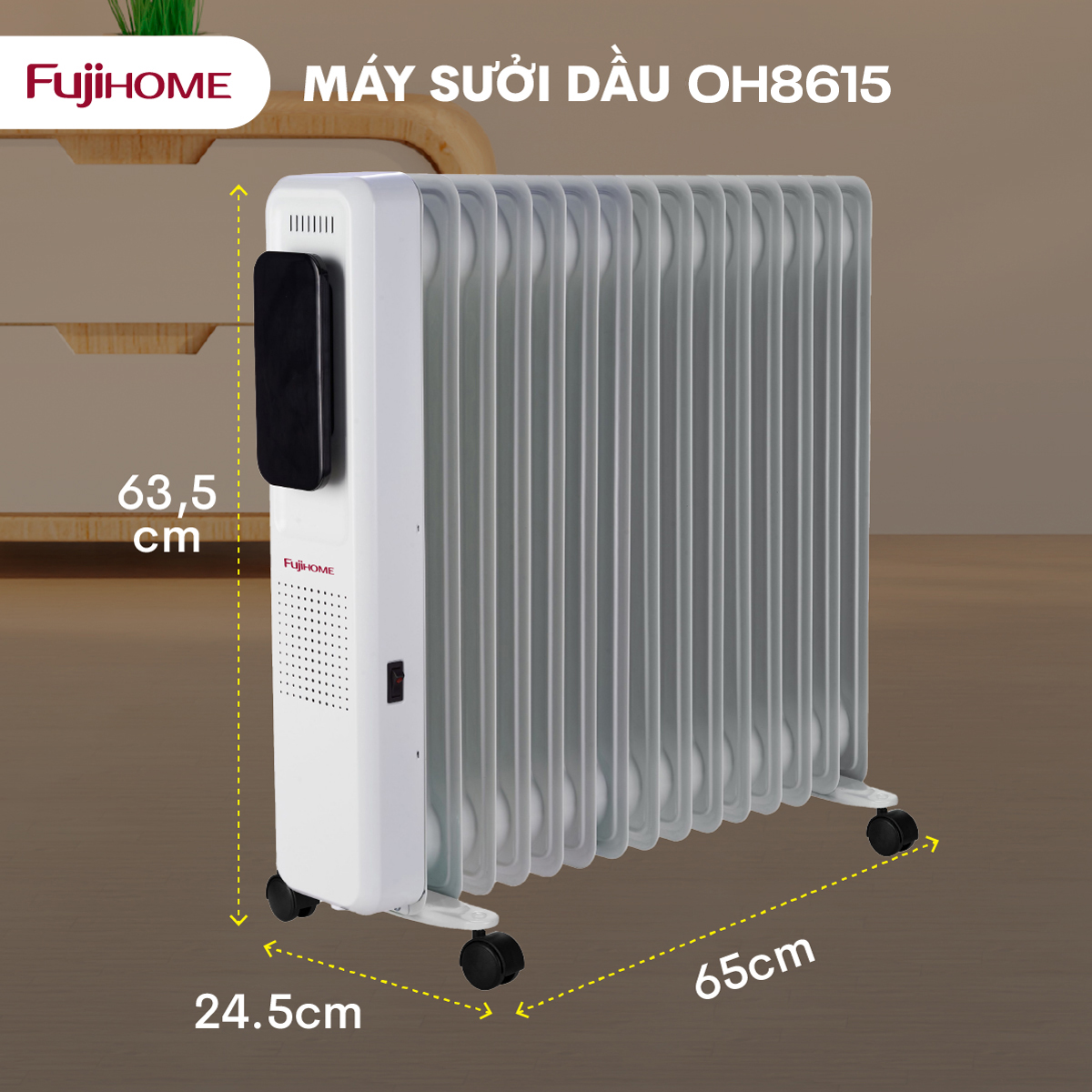 Máy sưởi dầu Fujihome cao cấp OH8615 Sản phẩm hợp tác cùng Newage technology Japan trong năm 2024. Công suất tối đa 2800W sử dụng phù hợp cho diện tích 20-30m2**