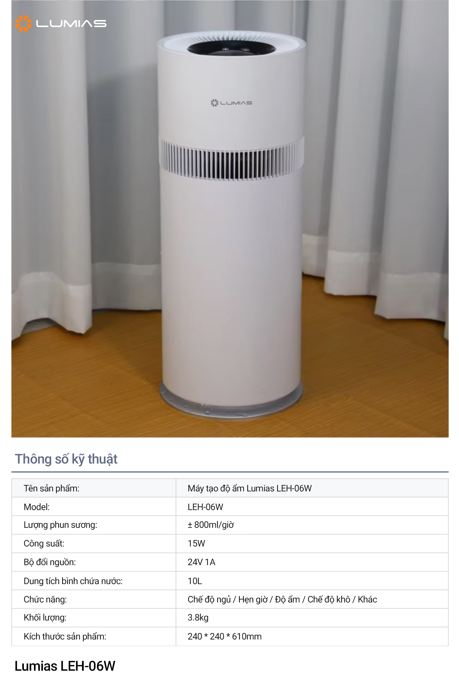 Máy tạo ẩm ion âm Lumias LEH-06W phù hợp với không gian lớn