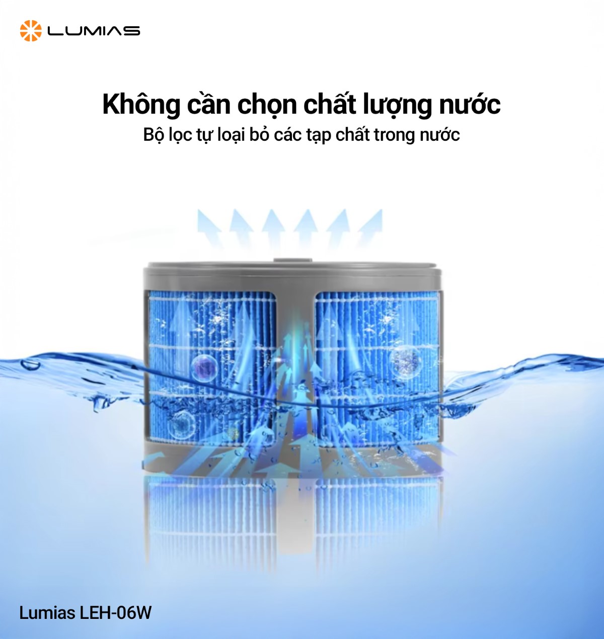 Ứng dụng công nghệ bay hơi lạnh tân tiến mang đến không gian ẩm tự nhiên lý tưởng. Với nguyên lý, bộ phận quạt gió sẽ hút không khí khô và thổi qua bộ lọc ẩm, giúp nước bay hơi và tạo ra hơi ẩm. Hơi ẩm này sau đó được phun vào không khí, làm tăng độ ẩm trong phòng một cách nhẹ nhàng và tự nhiên. Đồng thời, Lumias LEH-06W loại bỏ bụi và tạp chất có trong nước, đảm bảo cung cấp hơi ẩm sạch, an toàn cho sức khỏe.