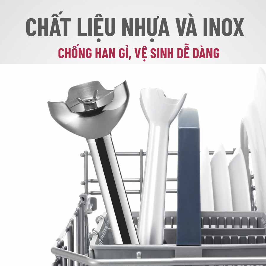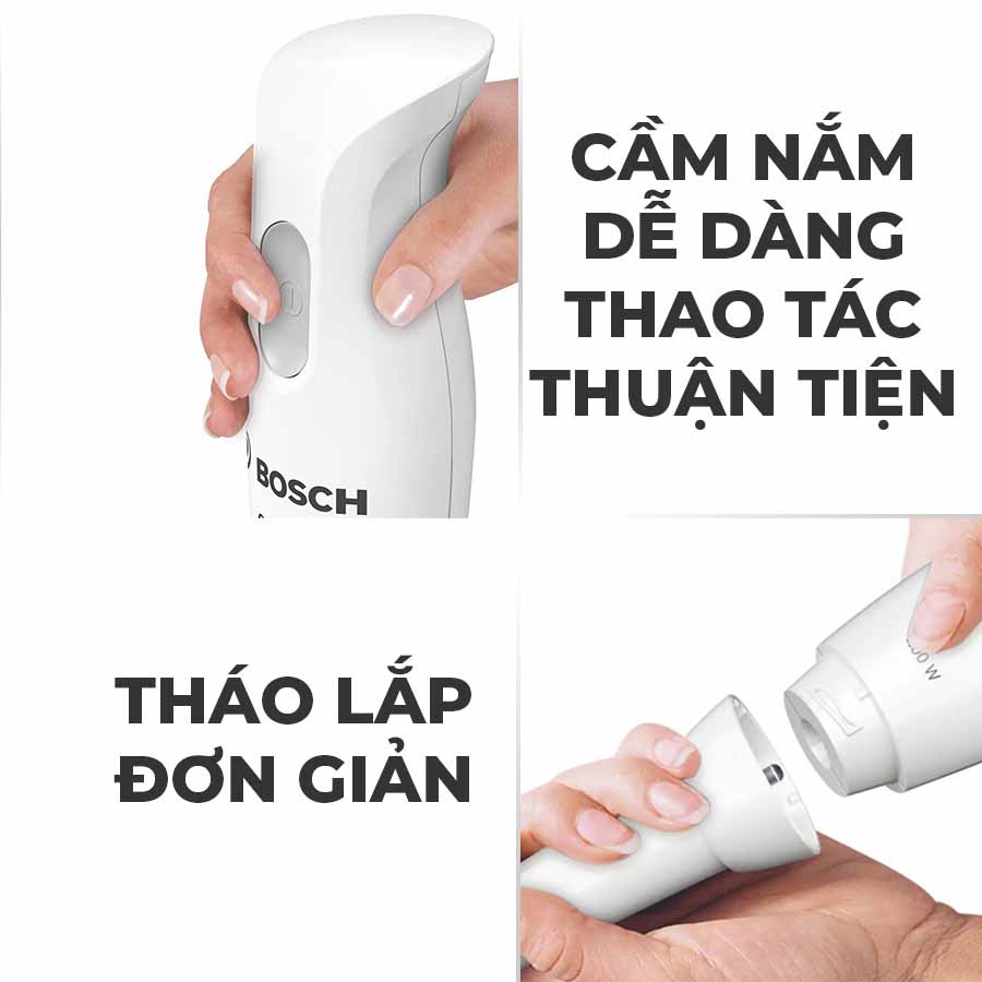 Máy xay cầm tay Bosch MSM26130 có thiết kế cầm tay nhỏ gọn, sử dụng linh hoạt, cho phép mang đi khắp nơi tuỳ theo nhu cầu sử dụng. Ngoài ra, máy còn sở hữu màu trắng tinh tế và trang nhã, đi cùng tay cầm bằng nhựa BPA bền tốt, ít bám bẩn, dễ vệ sinh, phù hợp với mọi không gian bếp, dễ dàng cất gọn khi không sử dụng đến