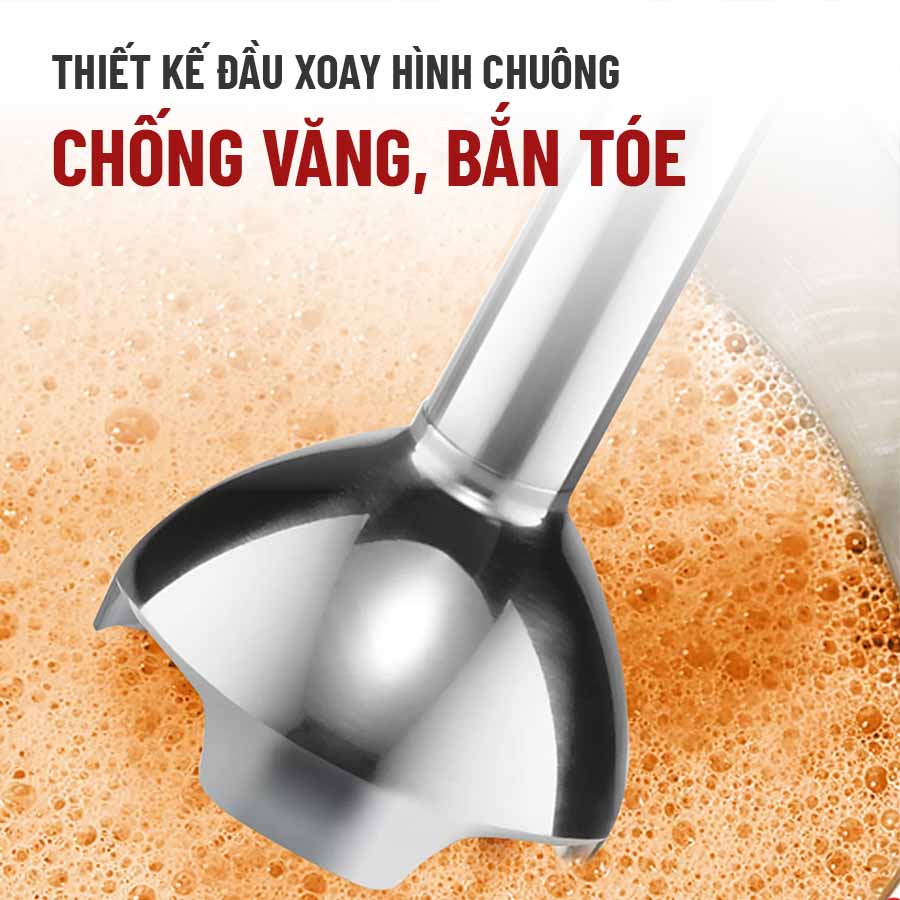 Máy xay cầm tay được tích hợp thêm chân cắt mỏng hỗ trợ xay cháo cho trẻ nhỏ hoặc các món tráng miệng, hay xay trong các ly cốc cỡ nhỏ
