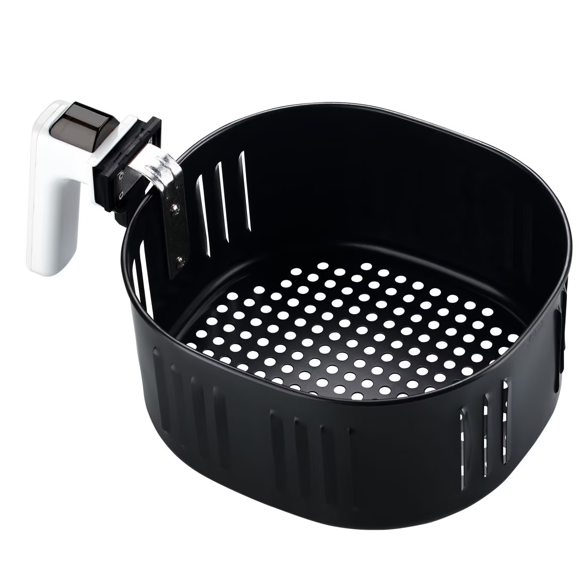Tay cầm cách nhiệt, cầm nắm không bị nóng, dễ dàng rút ra khỏi nồi chiên để vệ sinh bên trong và cất giữ gọn gàng sau khi sử dụng.