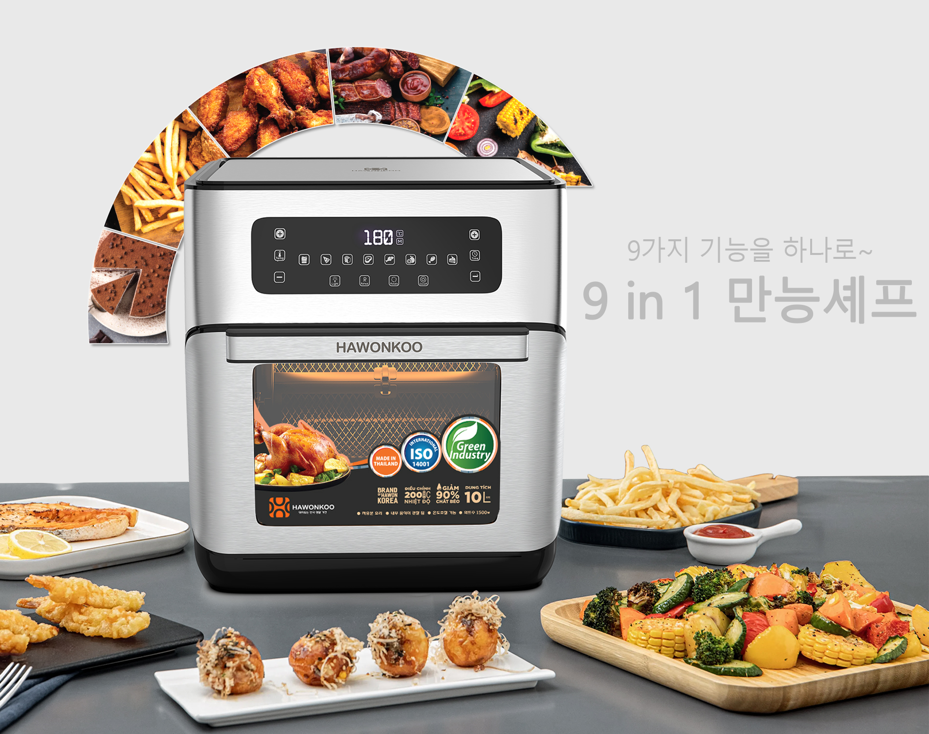 Hawonkoo AFH-101 được tích hợp 9 chương trình nấu mặc định đã được thiết lập sẵn nhiệt độ và thời gian bao gồm khoai tây chiên, pizza, bánh mì, thịt, cá, sấy khô, gia cầm, làm bánh, hâm nóng/ rã đông.