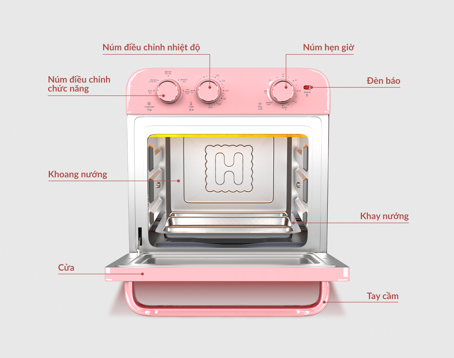 - Đèn sáng khi mở cửa và trong suốt quá trình nướng và khi mở cửa.