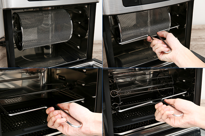 – Bao gồm: 2 vỉ nướng (đen), vỉ nướng, vỉ nướng có tay cầm, tay cầm, khay hứng, xiên quay, giỏ quay