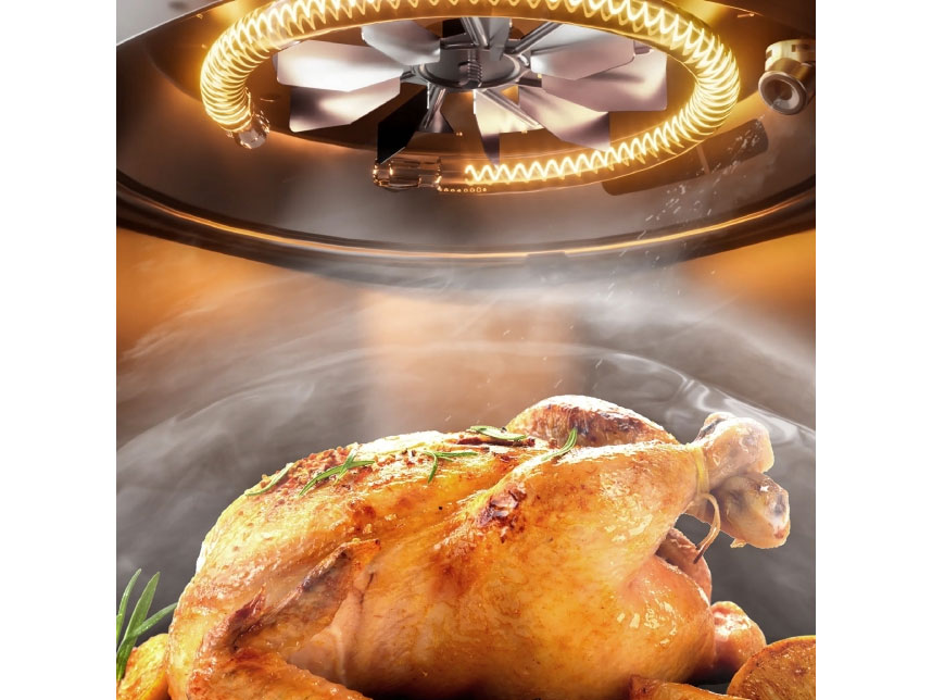 Thiết bị tích hợp đèn chiếu sáng bên trong, giúp người dùng dễ dàng quan sát món ăn hơn. Cửa sổ kính kết hợp với đèn chiếu sáng cho phép theo dõi quá trình nấu nướng mà không cần mở giỏ chiên, giúp giữ nhiệt độ ổn định và đảm bảo thực phẩm chín đều.
