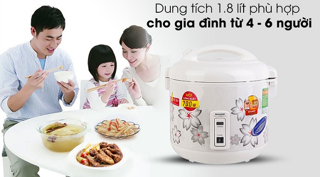 Với dung tích 1.8 lít, nồi cơm điện Sharp KS-N182ETV-SW hoàn toàn phù hợp với các gia đình có từ 4-6 thành viên. Khả năng nấu đủ lượng cơm cho nhiều người trong một lần giúp tiết kiệm thời gian, và đồng thời nồi còn có thể đáp ứng nhu cầu nấu nhiều món ăn khác như làm bánh, nấu cháo hoặc hâm nóng thức ăn.