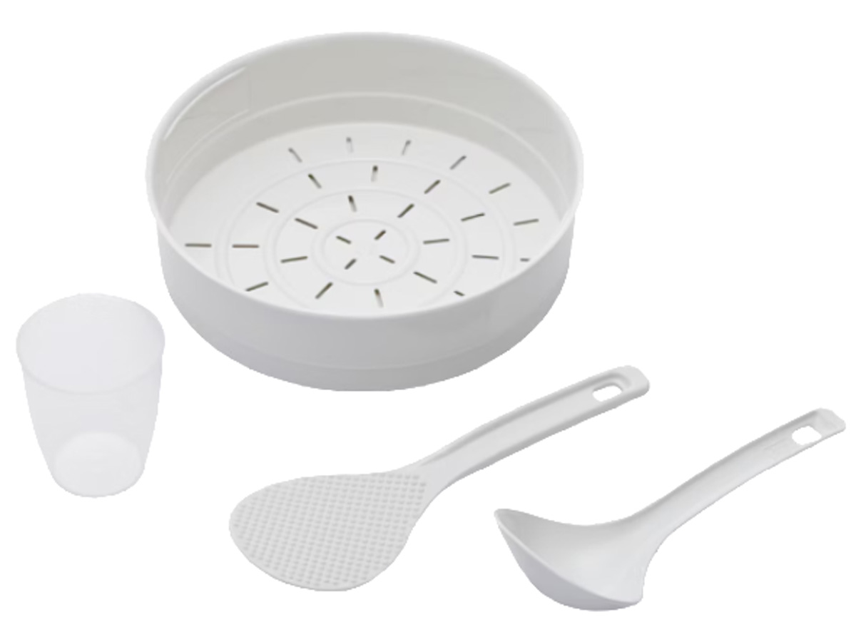 – Bộ phụ kiện đi kèm đầy đủ gồm: xửng hấp, cốc đong, muỗng canh và muỗng cơm.