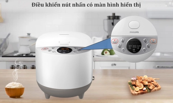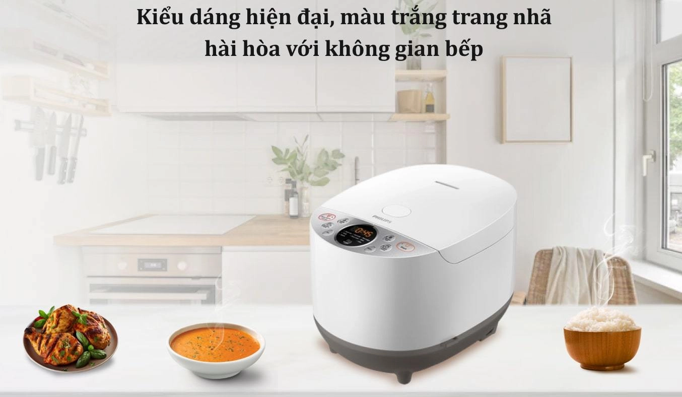 Nồi cơm điện tử Philips 1.8 lít HD4515/55 có thiết kế sang trọng cùng gam màu trang nhã hài hòa với không gian bếp. Nắp trong có thể tháo rời cho bạn dễ dàng vệ sinh. Đi kèm nhiều phụ kiện tiện cho bạn nấu nướng: cốc đong, muỗng cơm, xửng hấp. Nồi cơm có dung tích 1.8 lít phù hợp với gia đình có từ 4 đến 6 thành viên.