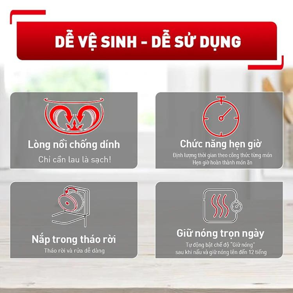 Nồi cơm điện tử Tefal RK776968 1.8L đồng với các tiện ích nổi trội