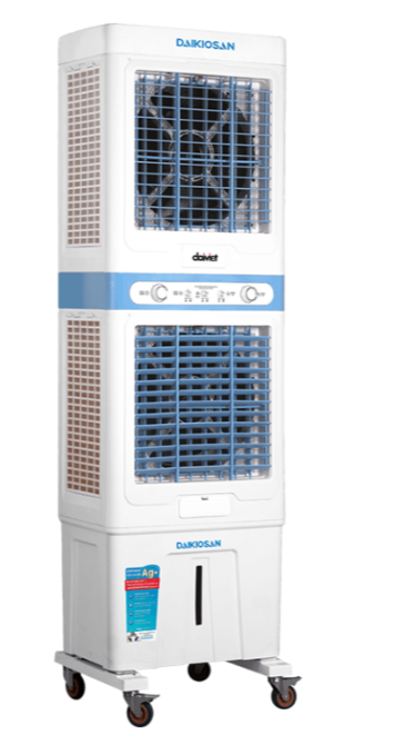 Quạt điều hòa Daikiosan DM211 sử dụng công nghệ làm mát bằng hơi nước thế hệ mới với lưu lượng gió 9.000 – 11.000 m3/h, tốc độ lưu lượng gió 13,6 – 16 m/s giúp cung cấp lượng khí mát được phân bổ thành 2 miệng gió trên và dưới giúp gió phân tán đều khắp mọi nơi, toả khí ra được xa hơn so với dòng thương mại chỉ có một miệng gió.