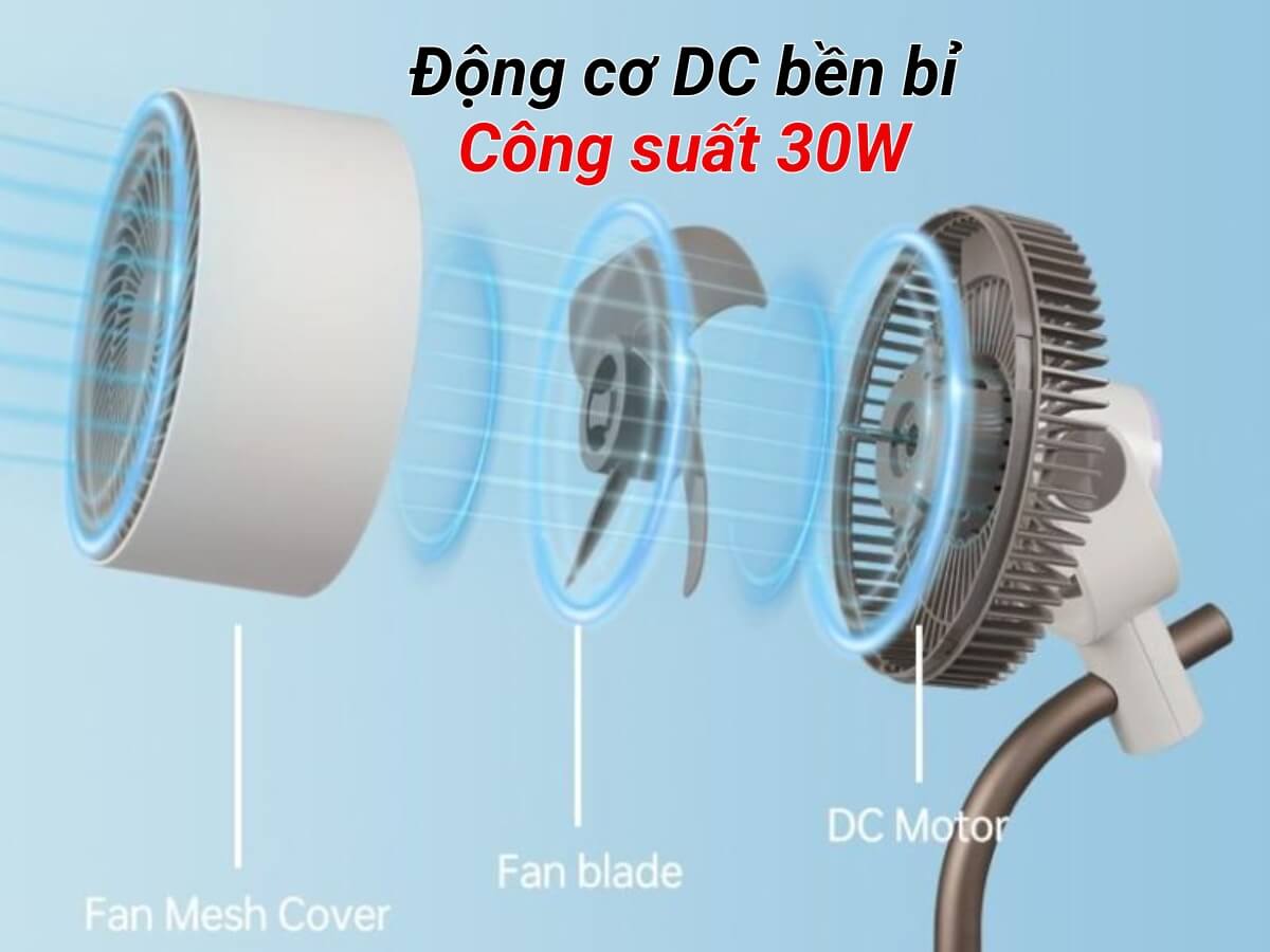 Quạt đối lưu Mi-Lux F6 Pro trang bị động cơ DC giúp quạt vận hành êm ái và bền bỉ, công suất 30W làm mát hiệu quả nhưng vẫn đảm bảo hiệu suất tiết kiệm điện tối ưu.