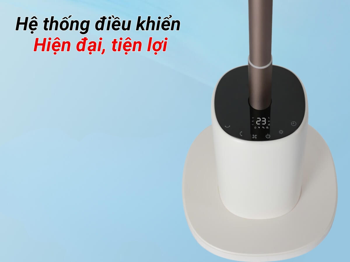 Hệ thống điều khiển trên quạt Mi-Lux F6 Pro rất hiện đại và tiện lợi, bao gồm màn hình LED cảm ứng trên thân quạt, hiện đại và tiện lợi sử dụng, thao tác chạm nhẹ là có thể điều chỉnh mọi hoạt động của quạt. Màn hình LED còn hiển thị nhiệt độ phòng giúp bạn dễ dàng theo dõi.
