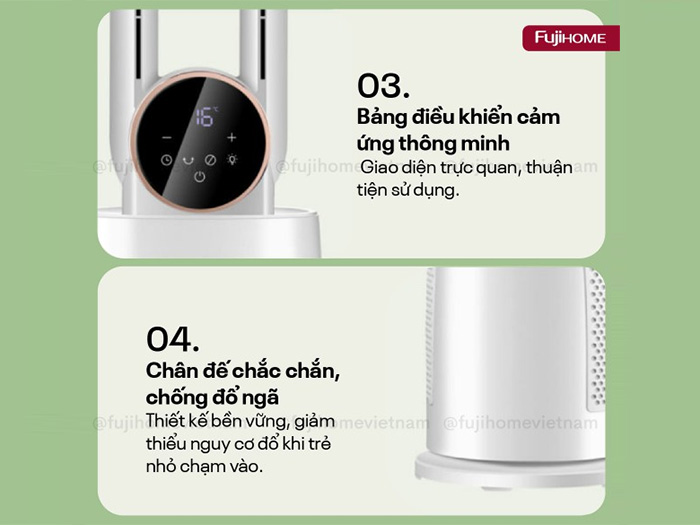 Quạt trang bị thêm màn hình LED sắc nét hiển thị thông số nhiệt độ và các chế độ hoạt động giúp việc sử dụng quạt trở nên dễ dàng hơn. Sản phẩm hỗ trợ cả điều khiển cảm ứng trực tiếp và điều khiển từ xa, mang lại sự tiện lợi tối đa cho người dùng.