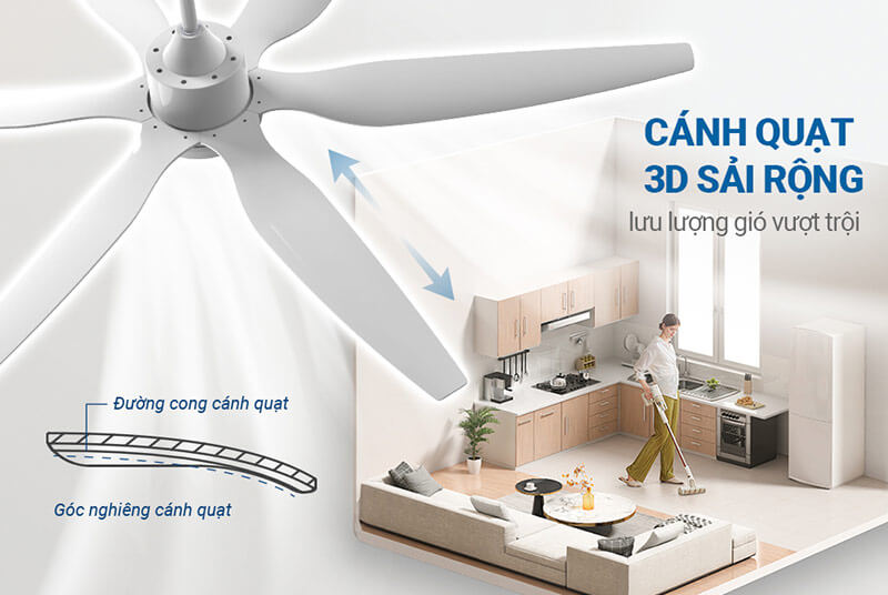 Sản phẩm được thiết kế phương thức quạt đảo ngược cánh để hút gió lên trần tạo cho người sử dụng không bị nghẹn gió, ít bị nhiễm lạnh. Giúp quạt được sử dụng cả 4 mùa làm không gian thông thoáng. Nó cũng giúp ích nhiều cho sức khỏe người dùng, nhất là người cao tuổi và trẻ nhỏ.
