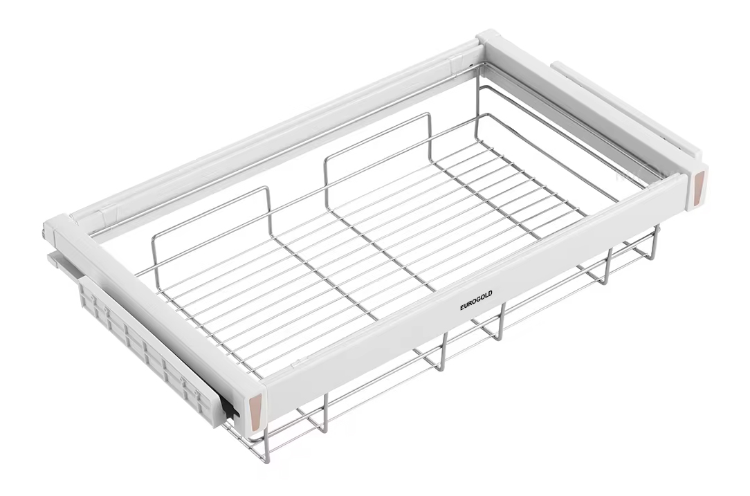 Đừng bao giờ xếp quần áo thành những chồng cao ngất ngưởng, bởi mỗi khi bạn cần lấy quần áo, bạn sẽ phải lục tung cả tủ mới có thể tìm thấy thứ đồ mình cần. Thay vào đó, hãy xếp gọn và chia đồ vào các rổ giống như rổ để đồ gấp Eurogold EVA380. Với thiết kế thông minh từ nan rổ thông thoáng cùng thanh ray trượt âm giảm chấn mở toàn phần giúp bạn dễ dàng quan sát toàn bộ quần áo trong rổ và lấy chúng ra một cách đơn giản.