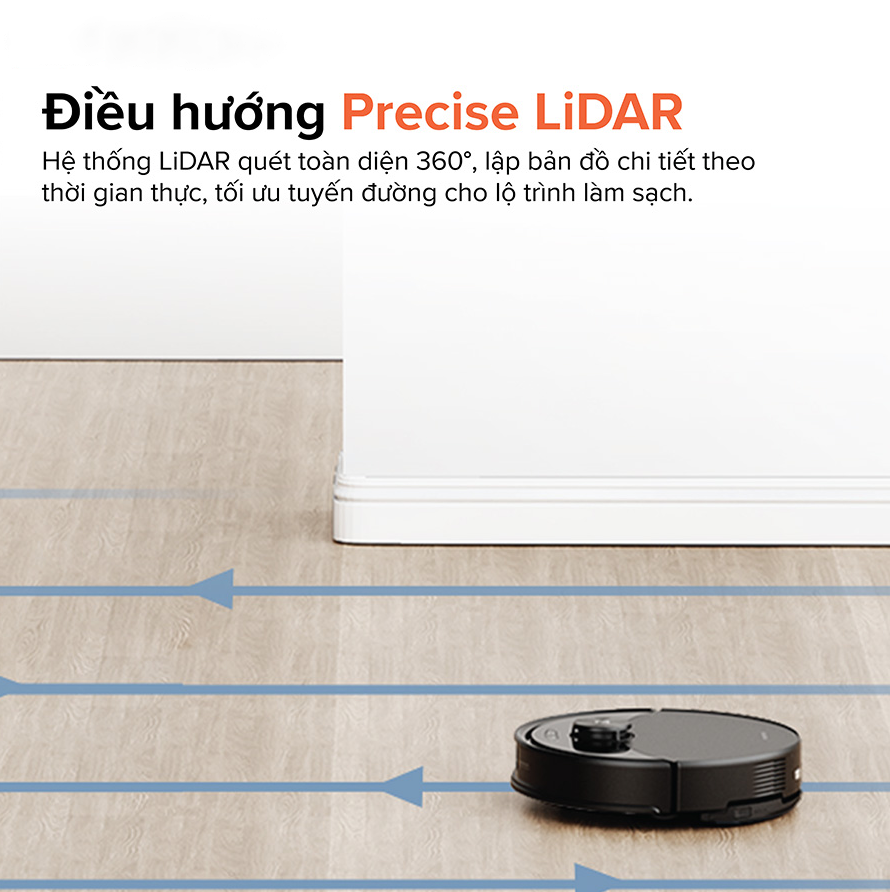 Sở hữu công nghệ định vị PreciSense LiDAR tiên tiến, robot có khả năng quét toàn diện 360 độ và lập bản đồ chi tiết môi trường xung quanh theo thời gian thực. Nhờ hệ thống này, Roborock Q10 PF+ không chỉ xác định chính xác cấu trúc ngôi nhà mà còn tối ưu hóa tuyến đường di chuyển, giúp tiết kiệm thời gian dọn dẹp và nâng cao hiệu suất làm sạch. Robot có thể tránh lặp lại các khu vực đã lau, không bỏ sót góc khuất và di chuyển thông minh hơn qua các không gian hẹp.