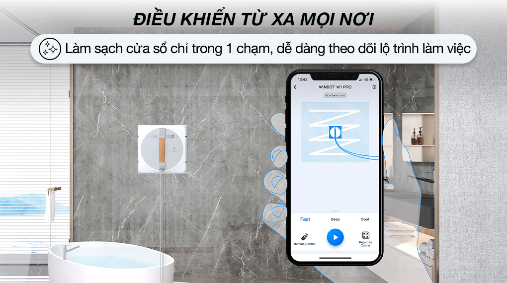 – Thuật toán cải tiến WIN – SLAM 3.0 có thể lên một lộ trình di chuyển chính xác, giúp làm sạch toàn diện, đảm bảo mặt kính sạch không tì vết. Đồng thời robot sẽ quay trở lại vị trí xuất phát để dễ dàng gỡ xuống sau khi hết phiên làm việc.