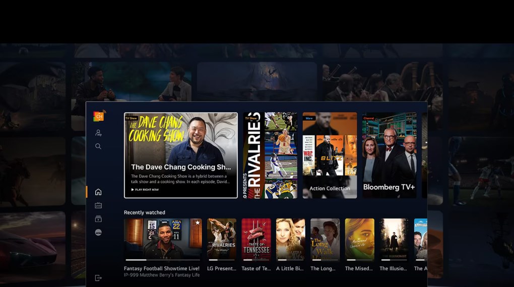 – Màn hình chính của hệ điều hành webOS 24 thiết kế đơn giản nhưng vẫn rất sang trọng với các ô ứng dụng thiết kế bo góc mềm mại, đẹp mắt.