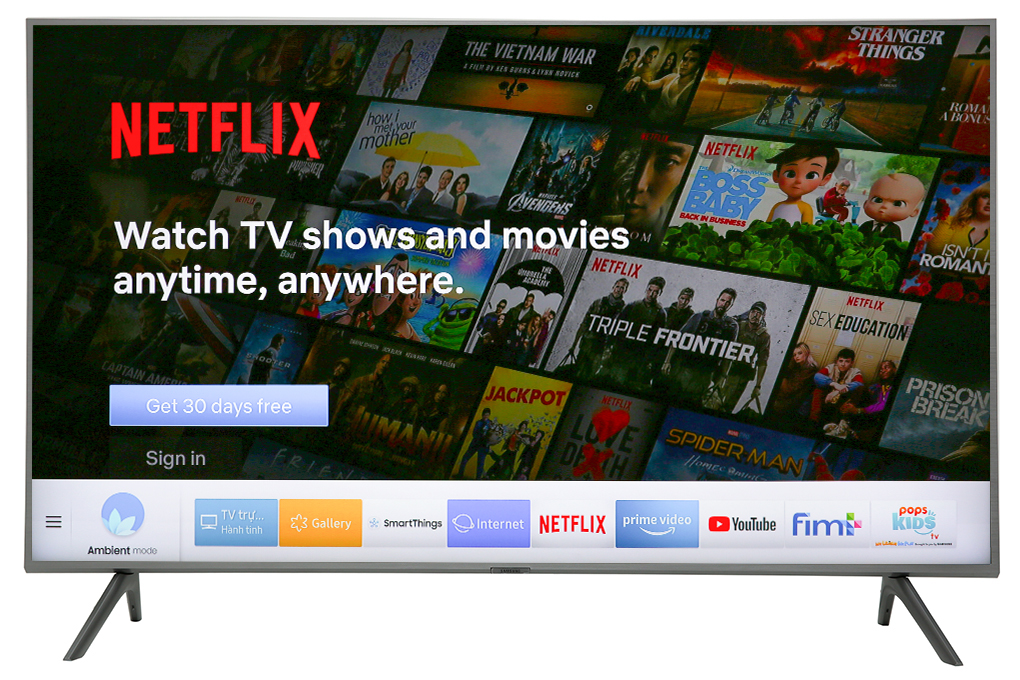 Chiếc tivi 49 inch này có chân đế dạng chữ V ngược chắc chắn, màn hình lớn giúp trải nghiệm hình ảnh trở nên thú vị hơn.