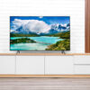 Kích thước tivi 49 inch vừa phải, thích hợp bố trí vào nhiều không gian nội thất khác nhau như phòng họp, phòng khác, phòng ngủ,… Chân đế dạng chữ V sáng bóng, chắc chắn, giúp tivi đứng vững trên nhiều dạng bề mặt phẳng khác nhau.
