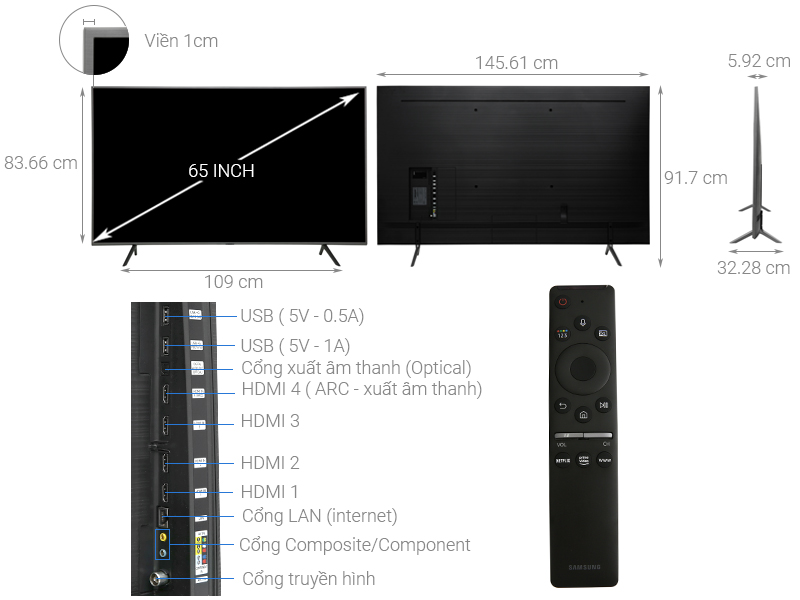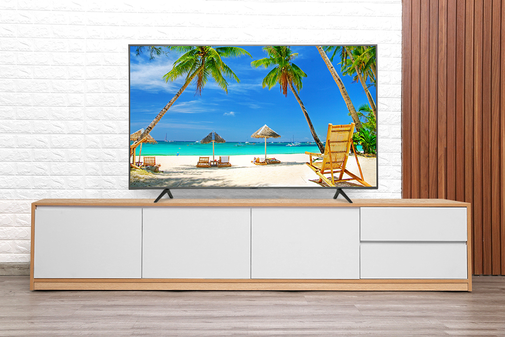 Tivi 65 inch kích thước lớn, thích hợp bố trí vào không gian nội thất rộng như phòng khách, phòng họp,… ngay có thể treo tường gọn gàng như một bức tranh nghệ thuật sinh động.