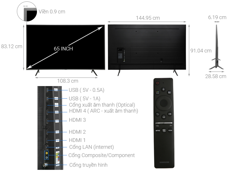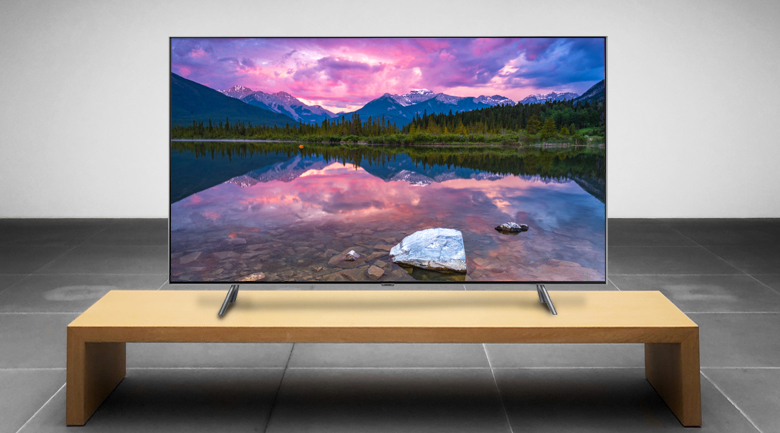 Màn hình tivi 65 inch lớn, thích hợp bố trí vào không gian nội thất rộng như phòng khách, phòng họp,… Ngoài ra, tivi có chân đế dạng chữ V sáng bóng, hài hoà với tổng thể thiết kế, giúp tivi trụ vững trên nhiều bề mặt khác nhau.