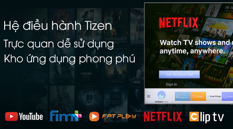 Tivi Samsung có giao diện sử dụng đẹp mắt, khả năng xử lý mượt mà cùng kho ứng dụng phong phú, đáp ứng mọi nhu cầu giải trí như xem phim, nghe nhạc, lướt web, chơi game,… thoải mái, phù hợp cho từng thành viên trong gia đình bạn.