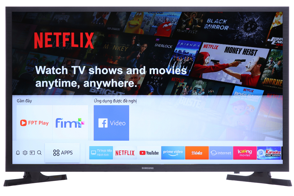 Tivi Samsung HD đáp ứng nhu cầu giải trí cơ bản của gia đình bạn với các ứng dụng được cài sẵn như: trình duyệt web, Netflix, Youtube,… ngoài ra bạn có thể tải thêm các ứng dụng khác như: FPT Play, Fim+, Spotify,…