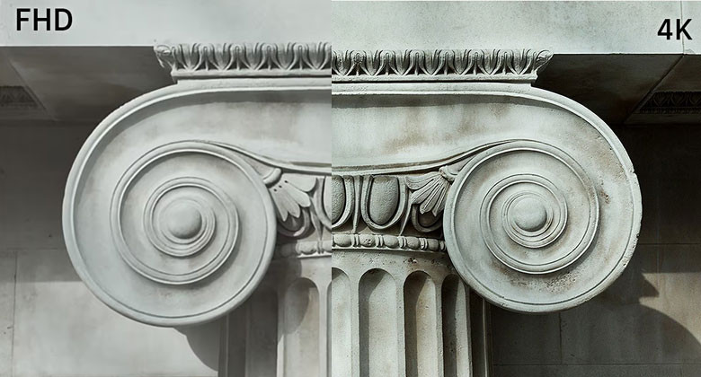 Độ phân giải 4K UHD với số lượng điểm ảnh gấp 4 lần so với độ phân giải FHD thông thường – tạo ra hình ảnh sắc nét, siêu chân thực đến từng chi tiết trong mọi phân cảnh.