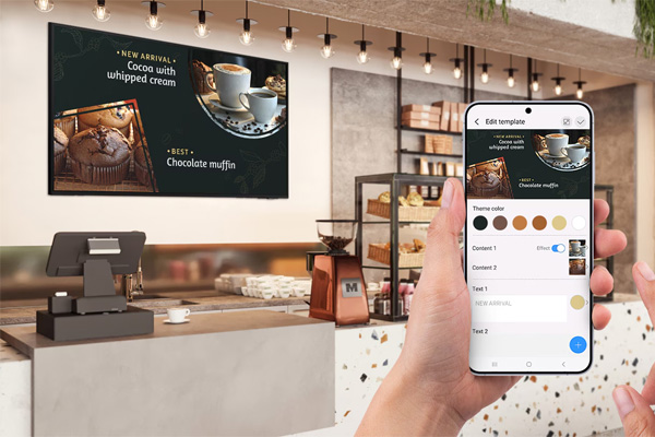 Với ứng dụng Samsung Business TV, người dùng có thể dễ dàng quản lý, lên lịch và hiển thị nội dung tùy chỉnh từ xa, hoặc tự tạo nội dung hấp dẫn với nhiều mẫu có sẵn.