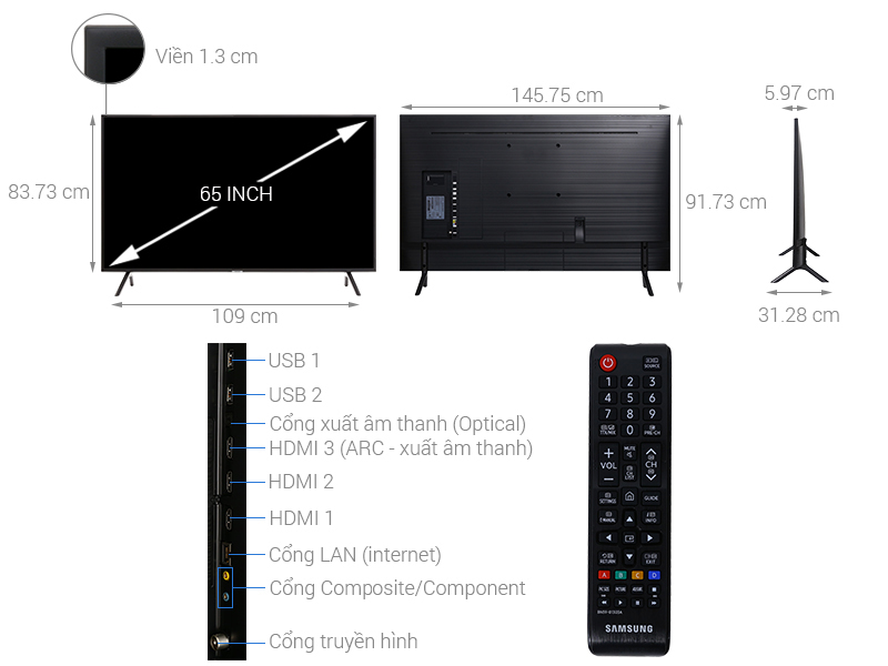 Tivi Samsung 65 inch phù hợp với các gian phòng có kích thước vừa và lớn như phòng khách, phòng họp,…