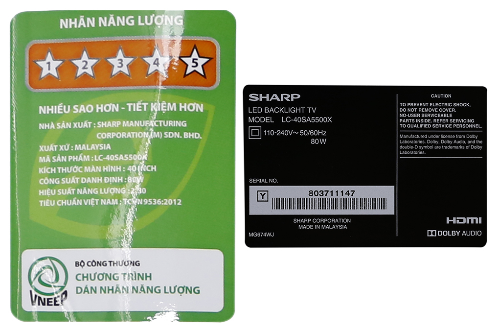 Smart Tivi Sharp 40 inch LC-40SA5500X được thiết kế với viền màn hình mỏng 1 cm đi kèm chân đế hình chữ V úp ngược giúp tivi đứng vững trên nhiều dạng mặt phẳng khác nhau.