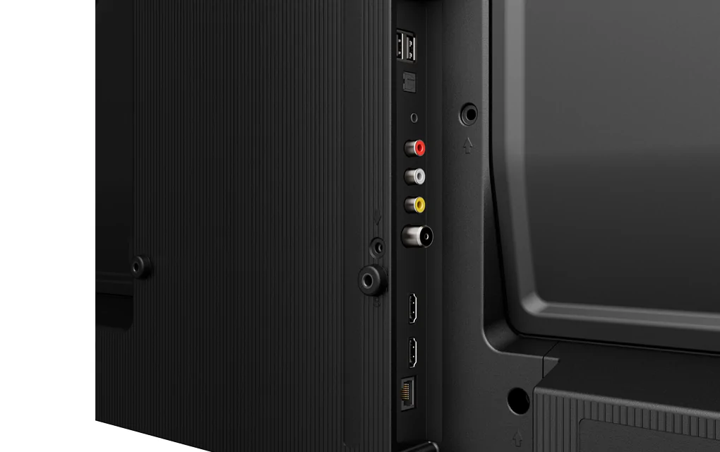 Phần viền màn hình cực mỏng được chế tác từ nhựa cứng cáp giúp tivi sở hữu vẻ đẹp tinh giản nhưng không kém phần thanh lịch. Bên cạnh đó, sản phẩm còn đi kèm đôi chân đế chữ V ngược thuôn mảnh làm từ nhựa cao cấp giúp tivi đứng vững trên nhiều vị trí và có thể hòa quyện với khung cảnh xung quanh phòng khách một cách dễ dàng.
