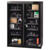 – Tủ gồm có hai khoang, có 2 đồng hồ hiển thị độ ẩm/nhiệt độ tại mỗi khoang khác nhau. Cánh cửa kính 2 lớp chống xước được thiết kế chịu sự va đập và đảm bảo tuyệt đối độ ẩm bên trong với hệ thống gioăng cao su từ bao quanh tạo nên sự chắc chắn mỗi khi mở ra đóng vào.