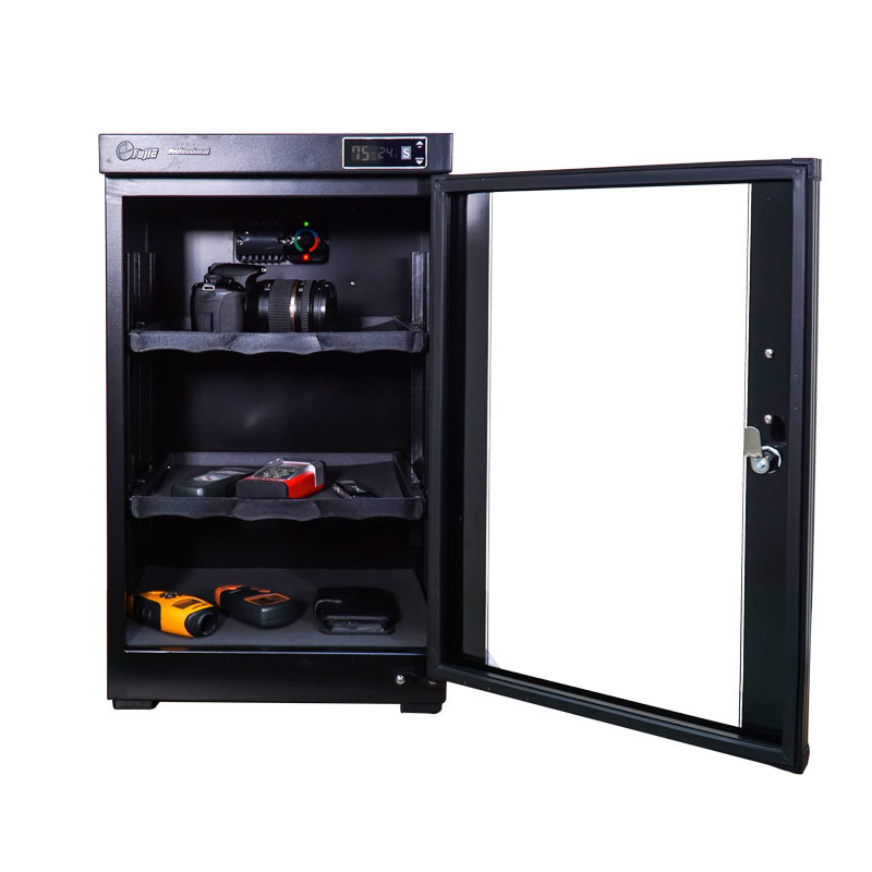 Tủ chống ẩm chuyên dụng kỹ thuật số hiệu FujiE DHC80 được sản xuất trên dây chuyền hiện đại đạt tiêu chuẩn quốc tế với cơ chế hút ẩm bằng IC gọn nhẹ, tốc độ hút ẩm nhanh gấp 10 lần và tiêu hao điện năng chỉ bằng 1/10 so với sản phẩm sử dụng công nghệ cũ.