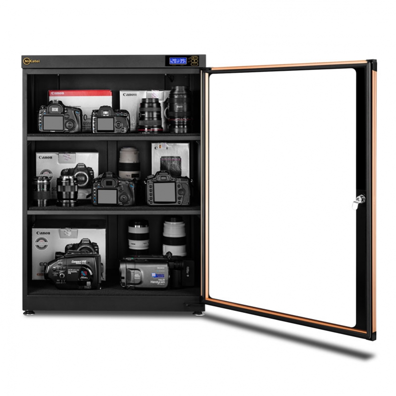 Ưu điểm nổi bật hơn các sản phẩm cùng loại trên thị trường: trang bị sẵn hệ thống đèn LED chiếu sáng bên trong tủ (có thể điều chỉnh tắt/bật được theo ý muốn), trên mỗi khay có 1 lớp mút mềm để bảo quản tốt hơn máy ảnh, ống kính đắt tiền, đèn hiển thị tủ đang trong quá trình hút ẩm hoặc đang ở trạng thái nghỉ.