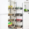 Các khay đựng được thiết kế linh hoạt phù hợp với nhiều kích thước chai lọ, gia vị, đồ khô… khác nhau trong không gian bếp.