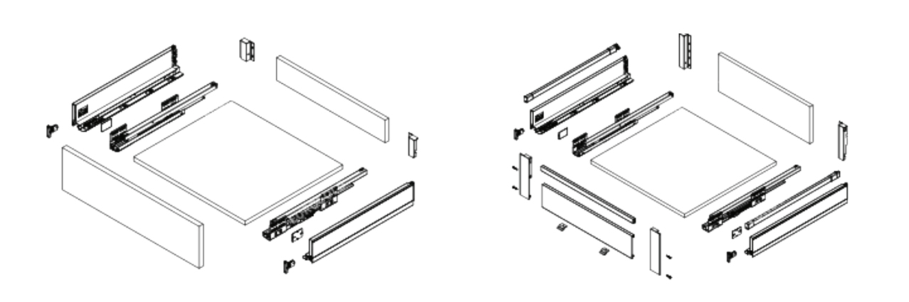 Thanh trượt đồng bộ đóng êm HURMAR thương hiệu Đức, chuyển động mượt mà, tải trọng tối đa là 30kg/tầng. Cấu trúc lắp đặt nhanh dễ dàng và thuận tiện.
