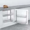 Thay vì xếp đồ đạc một cách không khoa học tạo nên sự bề bộn cho bếp thì hệ tủ kho chứa đồ khô sẽ giúp căn bếp luôn sạch sẽ, gọn gàng. Thiết kế 2 tầng, 4 rổ đựng, rổ lớn có thể chứa 5kg và rổ nhỏ có thể chứa 3kg bạn có thể tha hồ cất gọn tất cả các vật dùng, đồ ăn.. vào khoang tủ phía sau cánh cửa tủ.