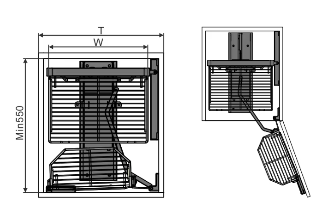 Khi đóng tủ bộ rổ chứa phía trong tủ sẽ trượt vào phía trong nhường chỗ cho bộ rổ ngoài kéo vào. Bộ rổ trong và ngoài khi đóng tủ sẽ nằm thẳng hàng. Vì vậy, khi đóng cửa tủ sẽ khít chặt không cho gián, côn trùng vào trong tủ.