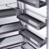 Thiết kế inox dạng hộp góp phần tạo cảm giác chắc chắn, khỏe khoắn cho tủ kho. Ngoài ra với thiết kế 6 tầng, 12 rổ đựng thì được thiết kế thu gọn trong khoang tủ góp phần tăng tính thẩm mĩ, tiết kiệm không gian cho căn bếp.