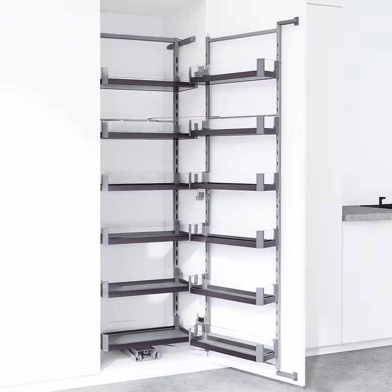 Thay vì xếp đồ đạc một cách không khoa học tạo nên sự bề bộn cho bếp thì tủ kho sẽ đem tới cho bạn sức chứa vô cùng lớn giúp căn bếp luôn sạch sẽ, gọn gàng. Với thiết kế 6 tầng, 12 rổ đựng, rổ lớn có thể chứa 5kg và rổ nhỏ có thể chứa 3kg bạn có thể tha hồ cất gọn tất cả các vật dùng, đồ ăn.. vào khoang tủ phía sau cánh cửa tủ.