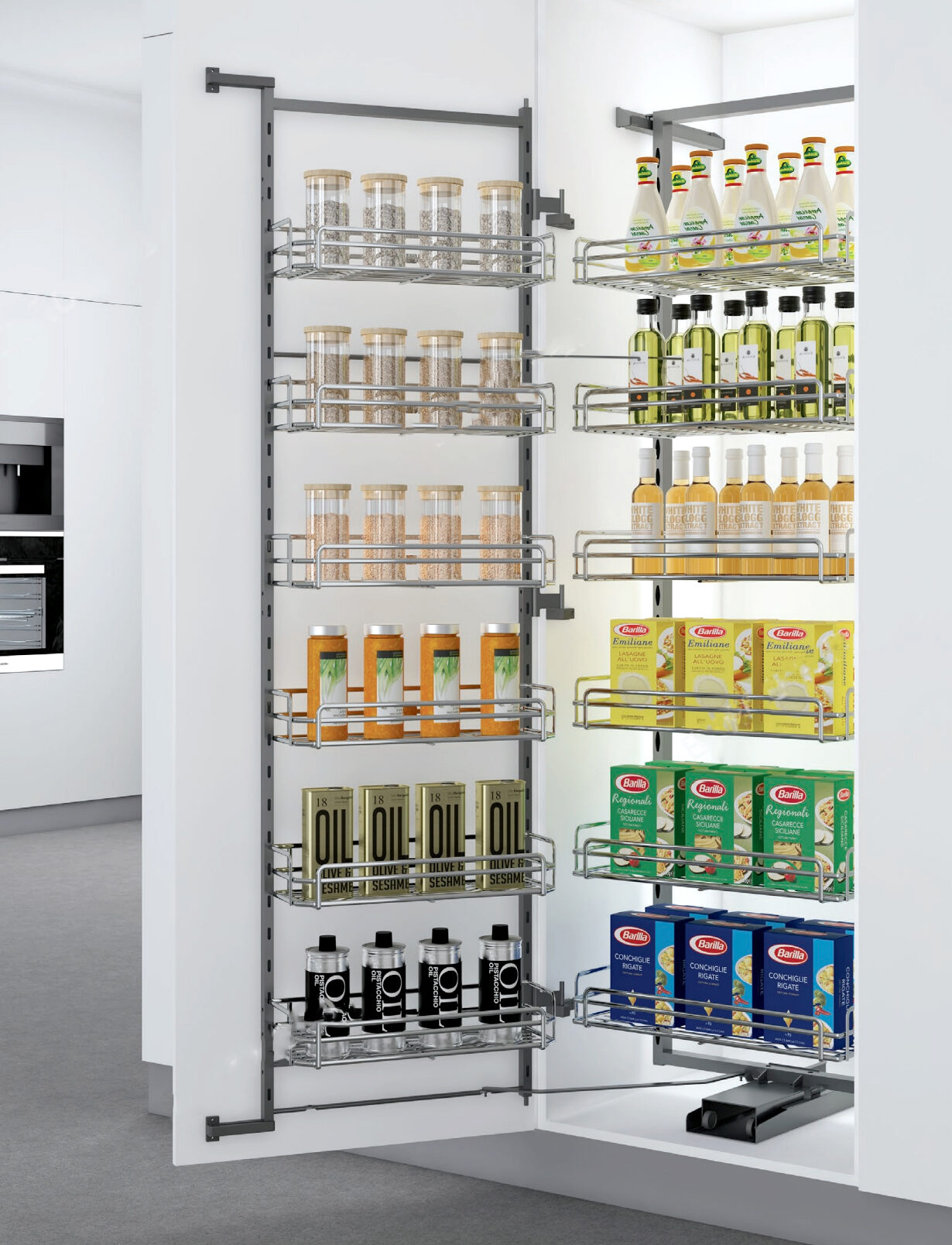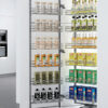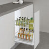 Các khay đựng được thiết kế linh hoạt phù hợp với nhiều kích thước chai lọ, gia vị, đồ khô… khác nhau trong không gian bếp.