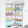 Thay vì xếp đồ đạc một cách không khoa học tạo nên sự bề bộn cho bếp thì hệ tủ kho chứa đồ khô sẽ giúp căn bếp luôn sạch sẽ, gọn gàng. Thiết kế 4 tầng, 8 rổ đựng, rổ lớn có thể chứa 5kg và rổ nhỏ có thể chứa 3kg bạn có thể tha hồ cất gọn tất cả các vật dùng, đồ ăn.. vào khoang tủ phía sau cánh cửa tủ.
