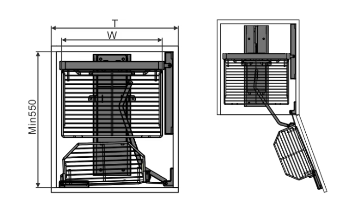 Khi đóng tủ bộ rổ chứa phía trong tủ sẽ trượt vào phía trong nhường chỗ cho bộ rổ ngoài kéo vào. Bộ rổ trong và ngoài khi đóng tủ sẽ nằm thẳng hàng. Vì vậy, khi đóng cửa tủ sẽ khít chặt không cho gián, côn trùng vào trong tủ.