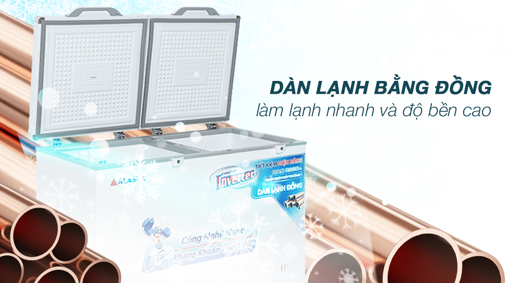 – Ngoài việc nâng cao khả năng làm lạnh nhanh, tủ đông Alaska 282 lít này còn được trang bị Gas R600a bảo vệ môi trường, giúp bạn tiết kiệm điện năng tiêu thụ hàng tháng.